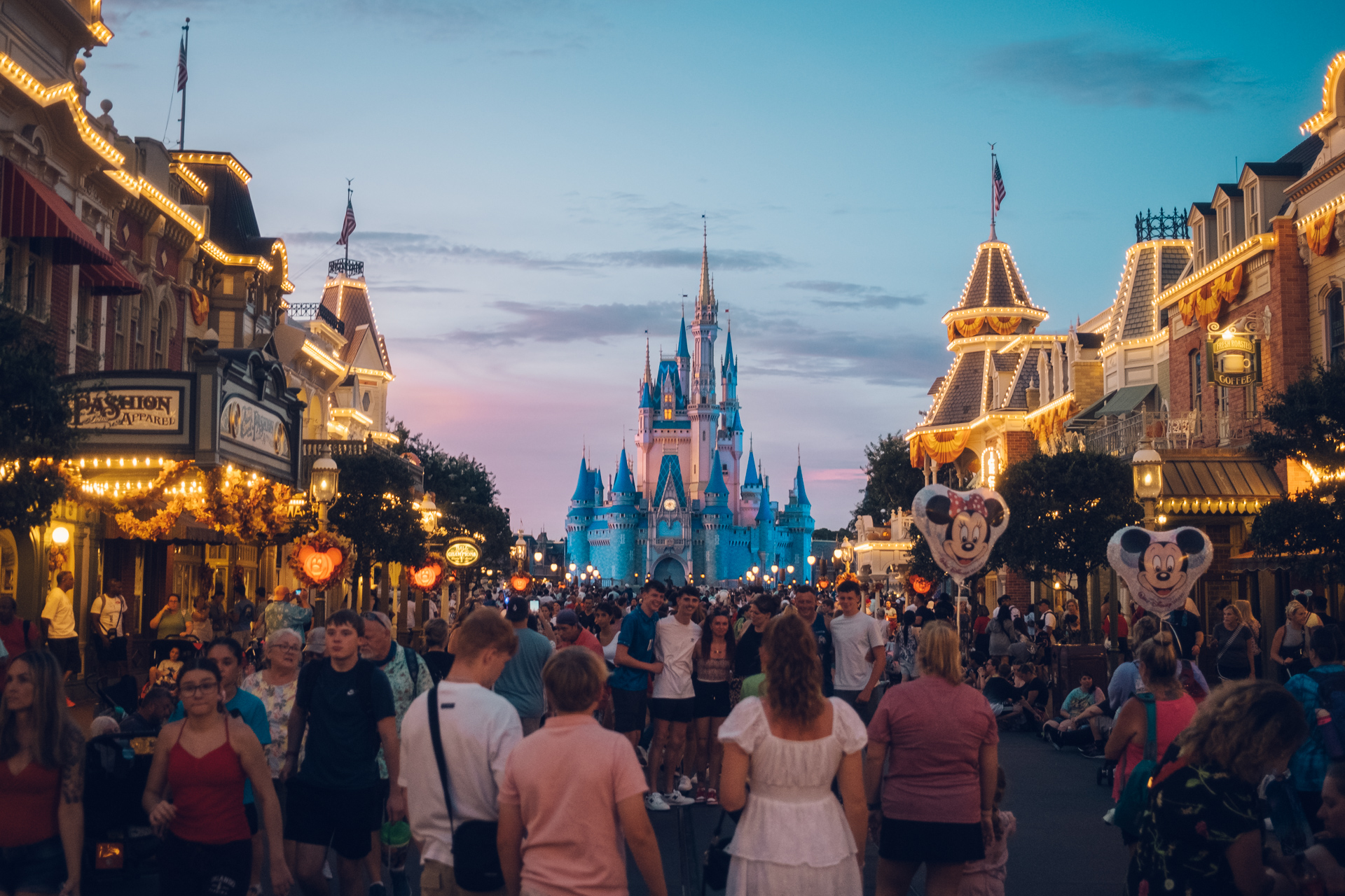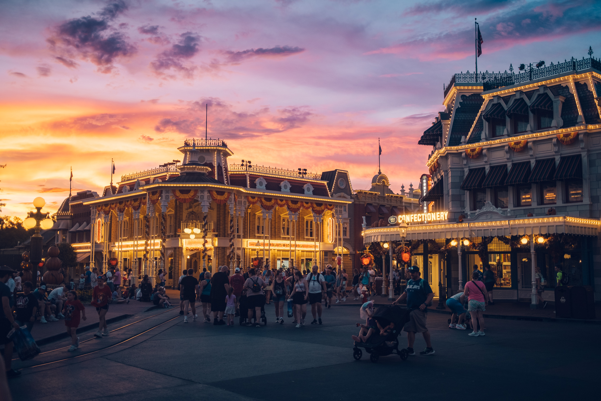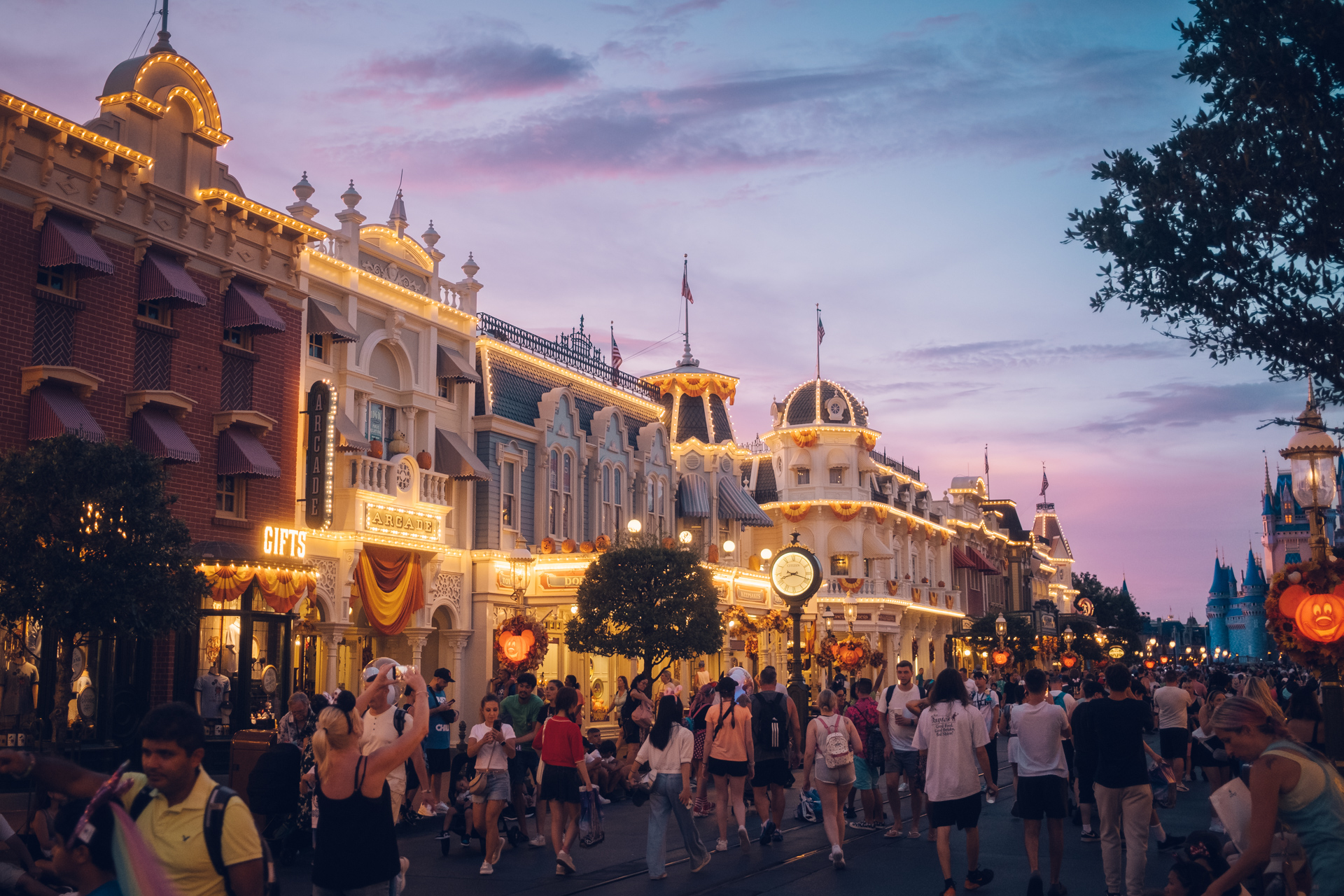 Main Street at Disney World Florida is just as magical in the evening as it is through the day, especially when you're treated to a beautiful pink and yellow sky as the sun dips below the horizon. This is where the Tiffen Glimmer Glass filter really shines.