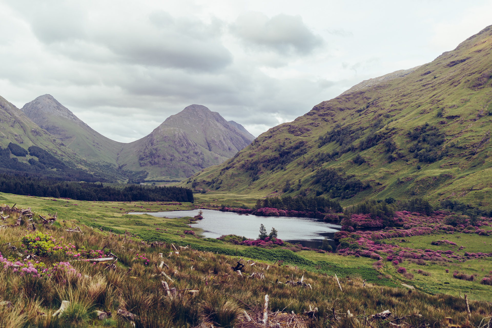 I spent the first night of my roadtrip up the west coast of Scotland by the banks of Loch Etive, a tidal loch in Argyll & Bute. I found a great parking spot at the end of the beautiful Glen Etive to park my van. The valley looked gorgeous - lush and green with a smattering of pink and white foxglove and purple heather.