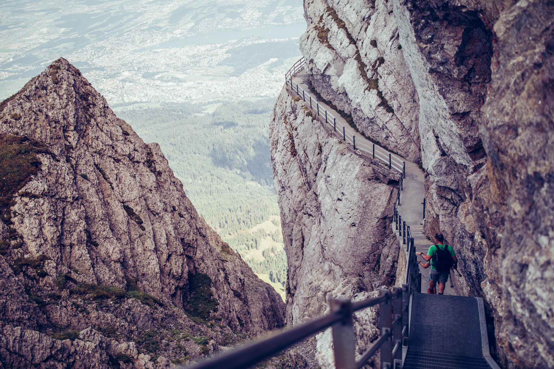 The fifth leg of my motorcycle tour across Europe brought me to Pilatus 'The Dragon Mountain' - a massive hill towering some 2,128m above Lucerne in the Swiss Alps. I spent the whole day doing the round-trip, reaching the peak via cable car and hiking various cliff-edge paths and tunnels.