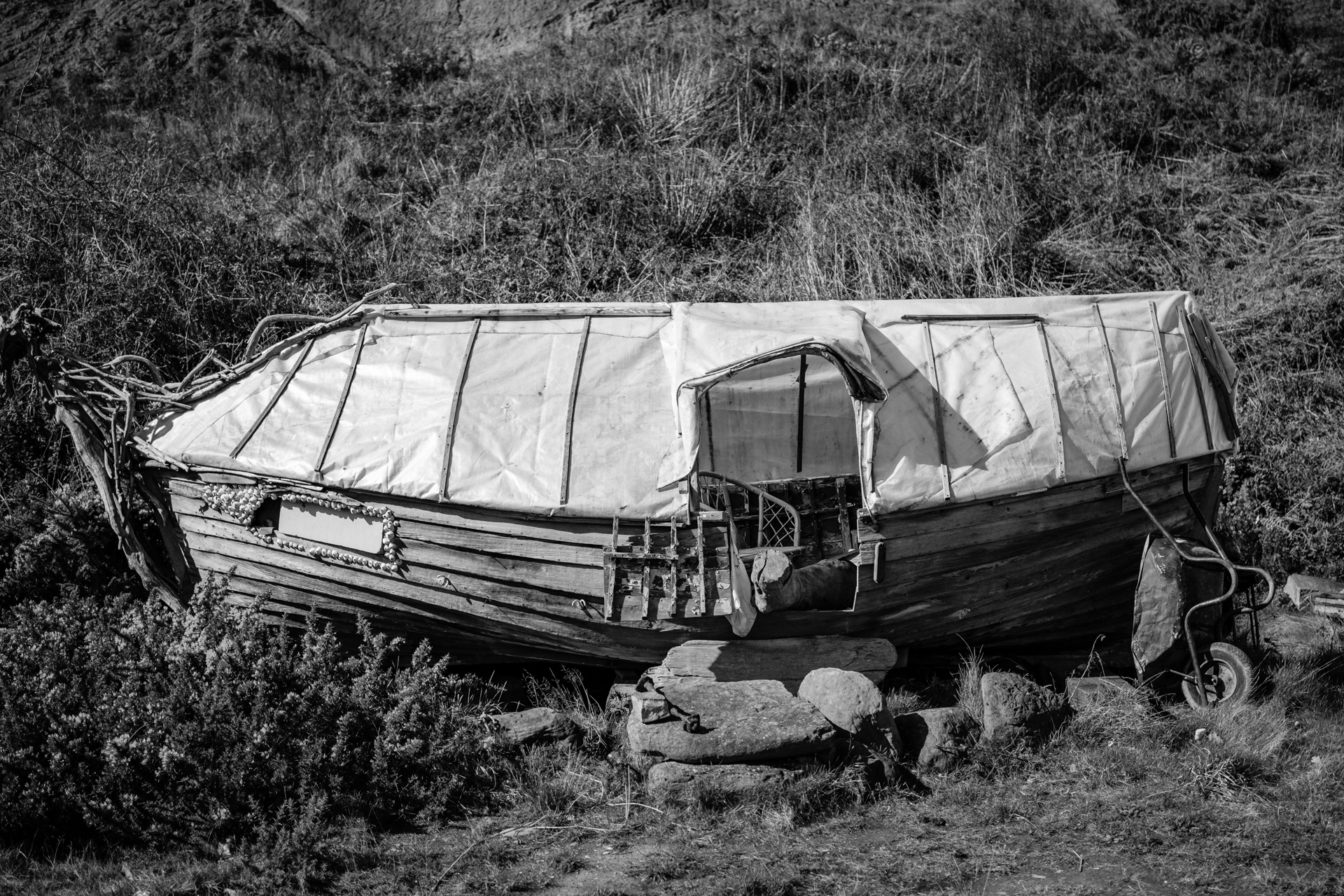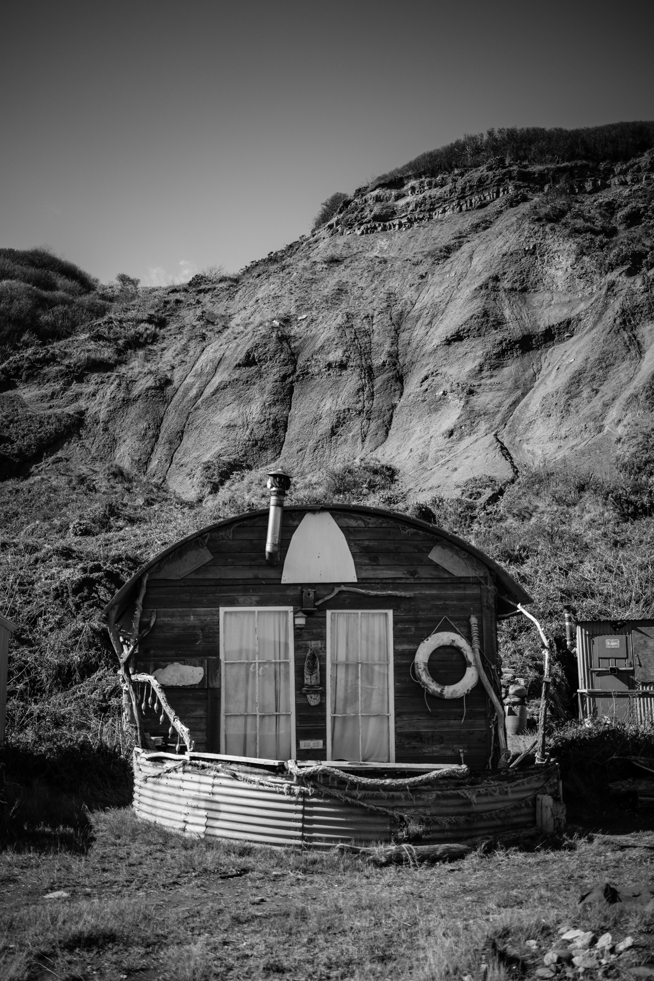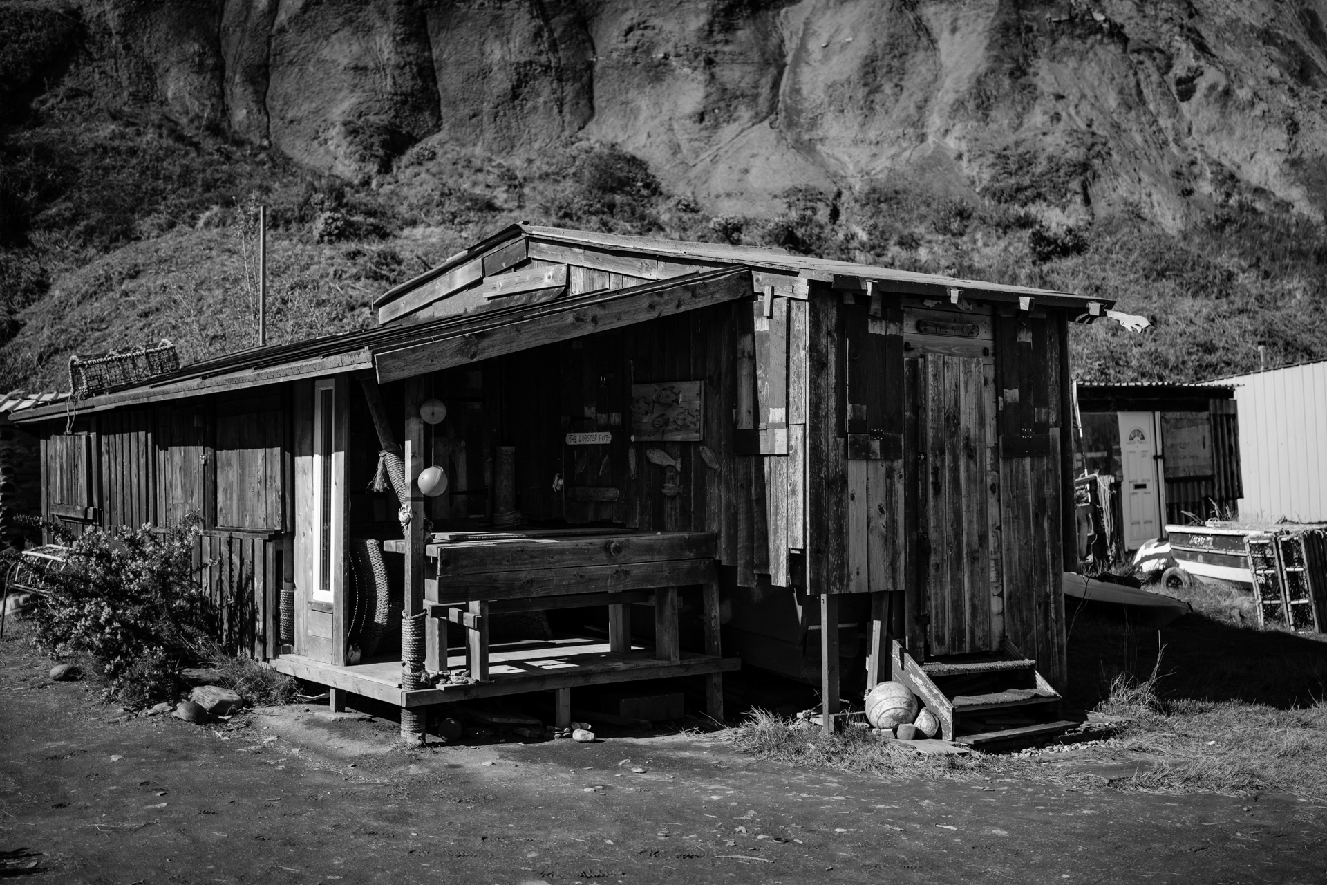 Just a short ride from Whitby, at the bottom of a cliff, I found this weird little shanty town of fishermen's huts. I'd heard tell of it before, and was intrigued to see it for myself. With my birthday off work and a new motorbike to run-in, I took the opportunity to ride downa and check it out.