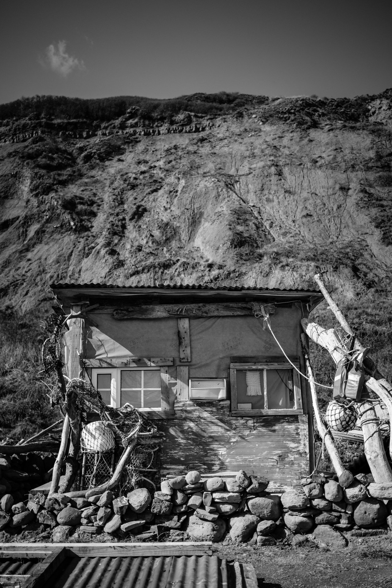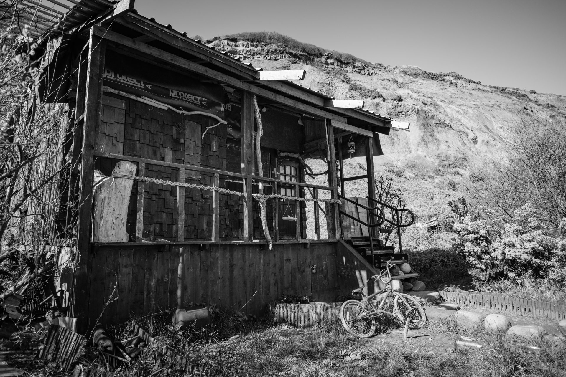 It's an eerie place, with a Hills Have Eyes kind of vibe to it. The clonking of handmade wooden wind chimes and flapping of makeshift flags only add to the feeling that you're about to be murdered, especially when you're on your own... which you will be, because getting to it isn't for the faint of heart, or the weak of knees. At least not after several days of heavy rain.