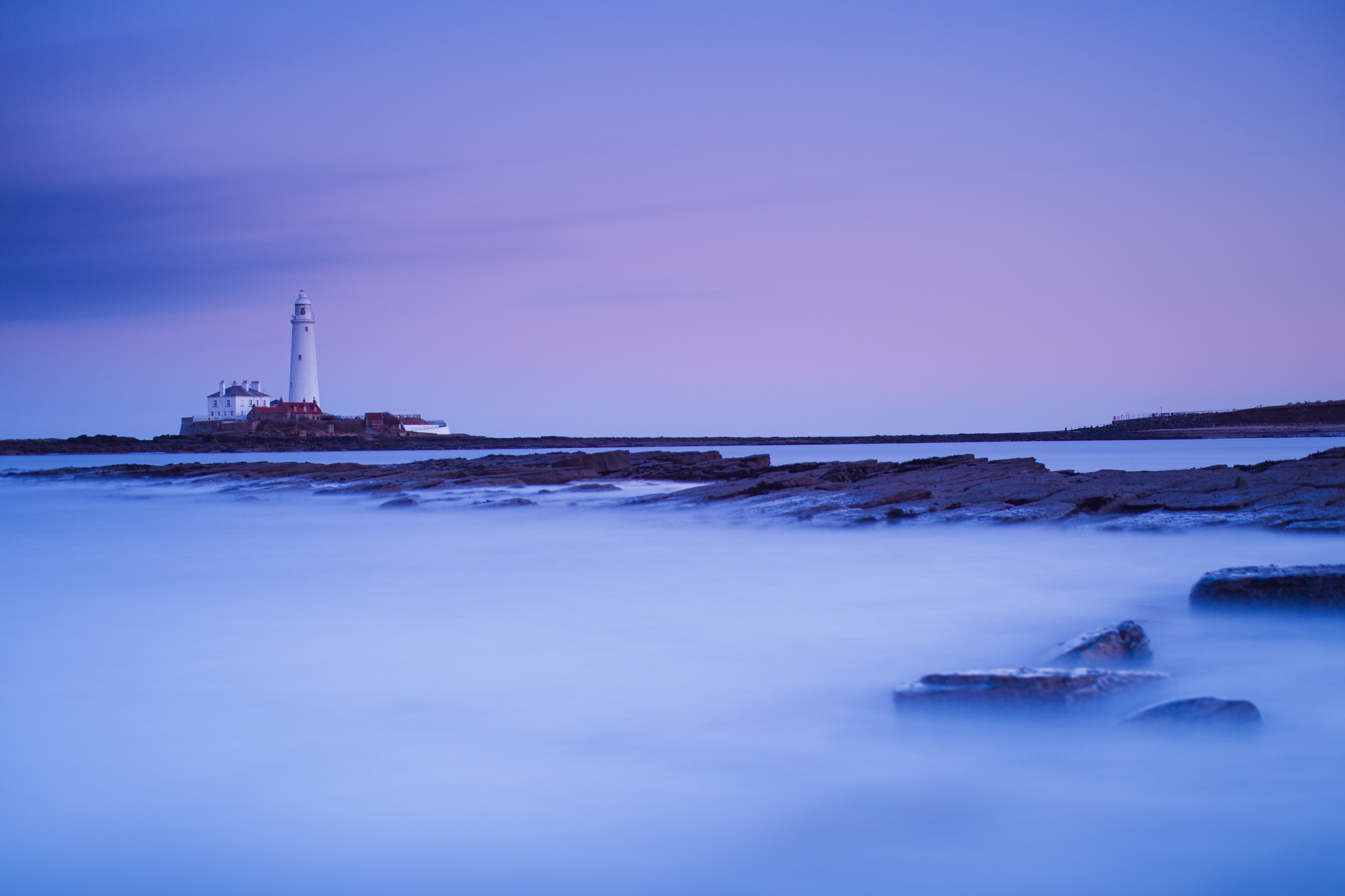 Normally, I photograph St. Mary's Lighthouse at sunrise, but today I had an early finish at work, so decided to head down and get some pictures of her as the sun went down. The light is different in the evening here on the East coast, creating a beautiful blue/purple cast that feels a little otherworldly.