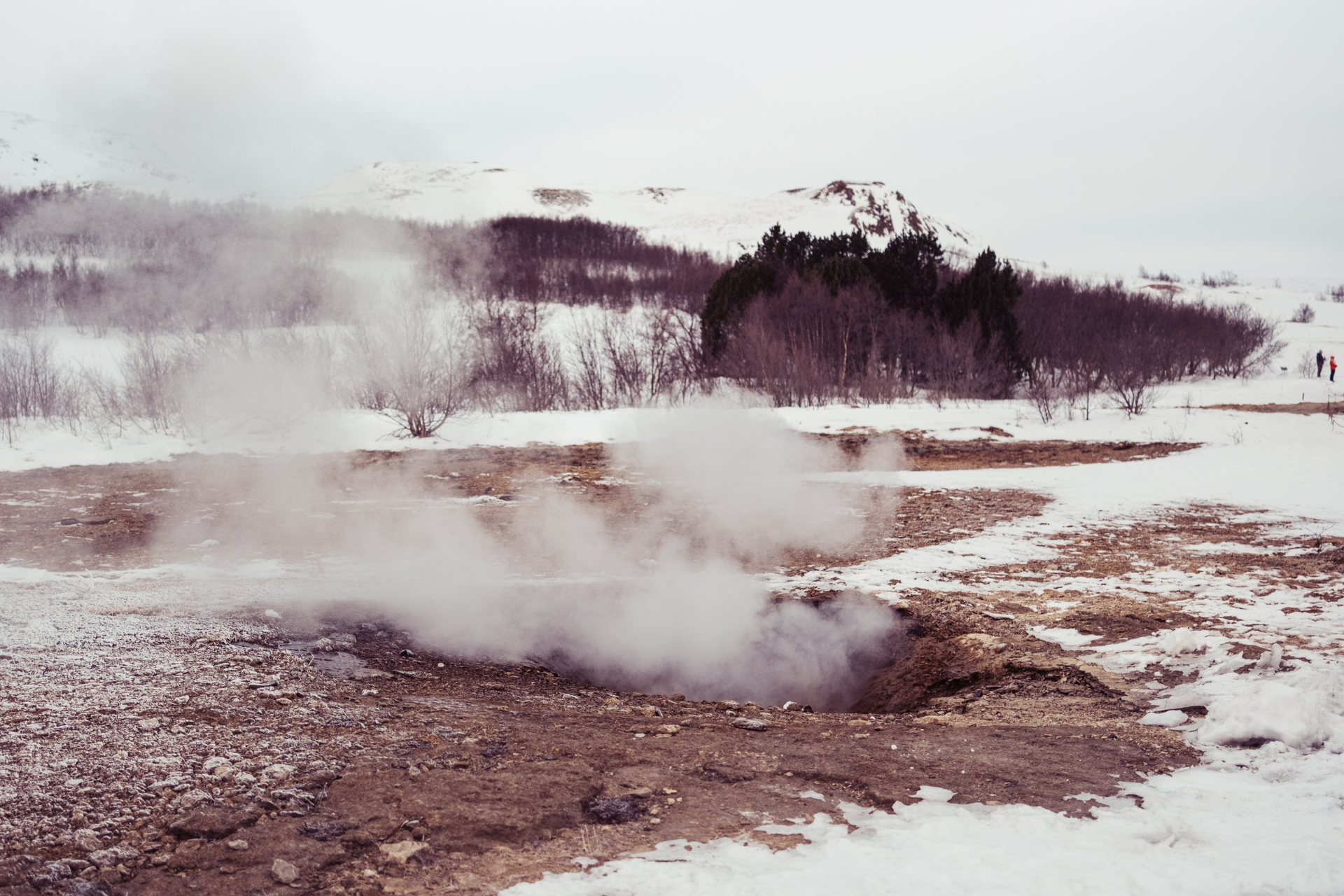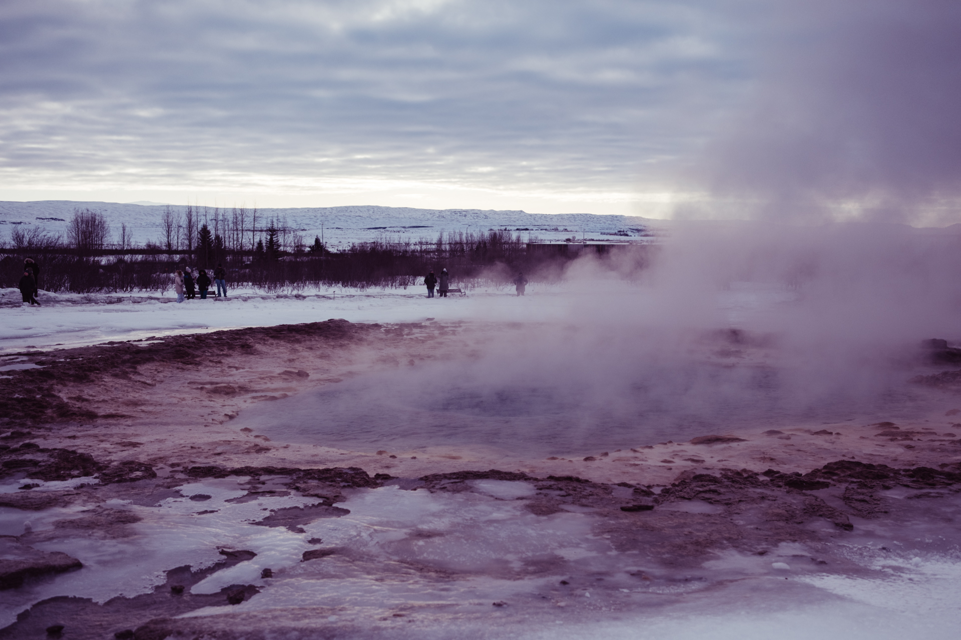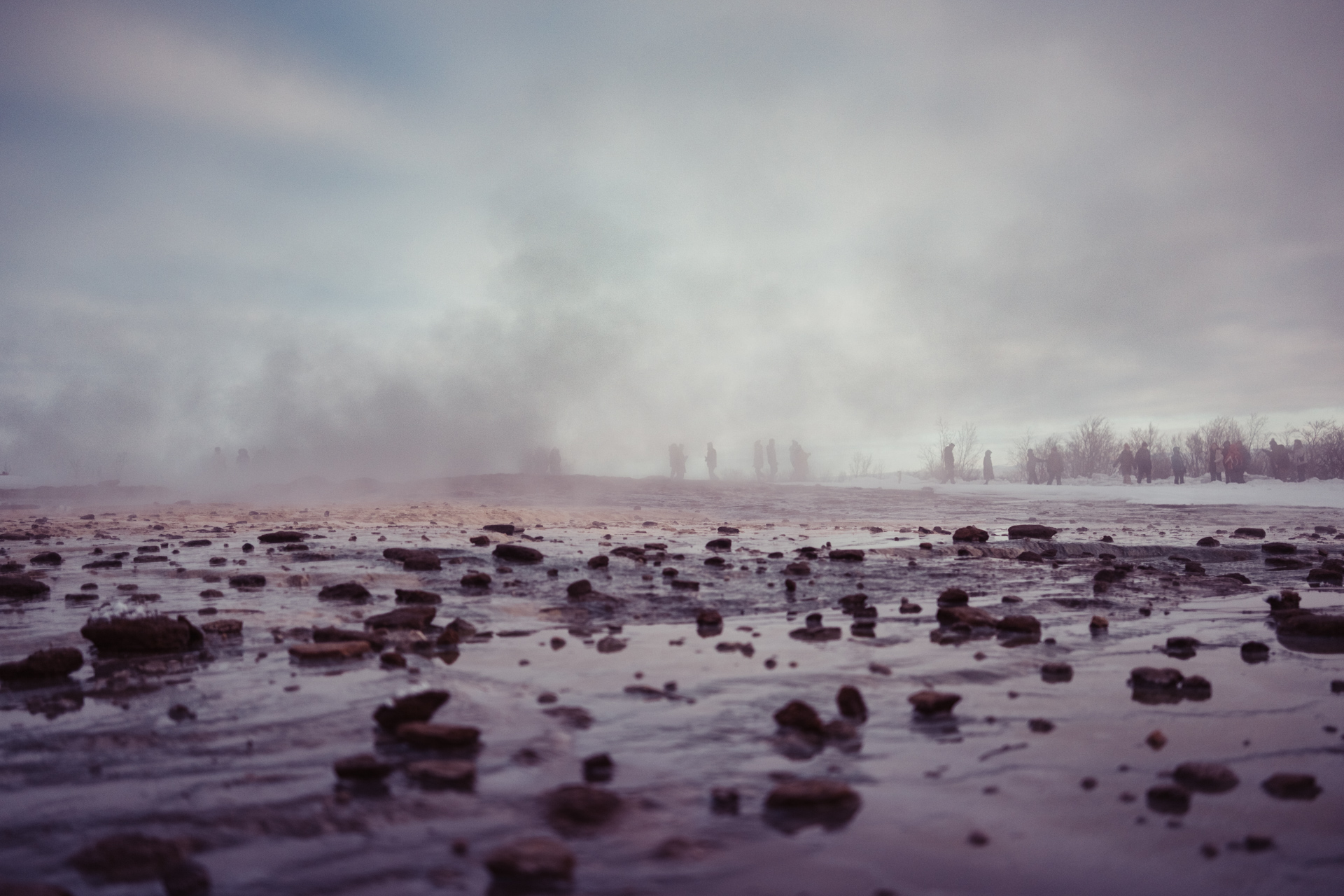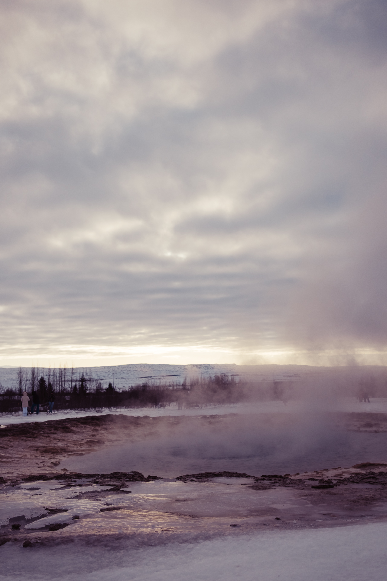 This was my second trip to see the Great Geysir of Haukadalur valley, Iceland. It's a such an eerie place, shrouded in an eternal mist and thick with the smell of sulphur. The mist of course is the steam from a giant natural volcanic hot spring - a massive hole in the ground that blasts boiling water up to 60m in the air every few minutes.