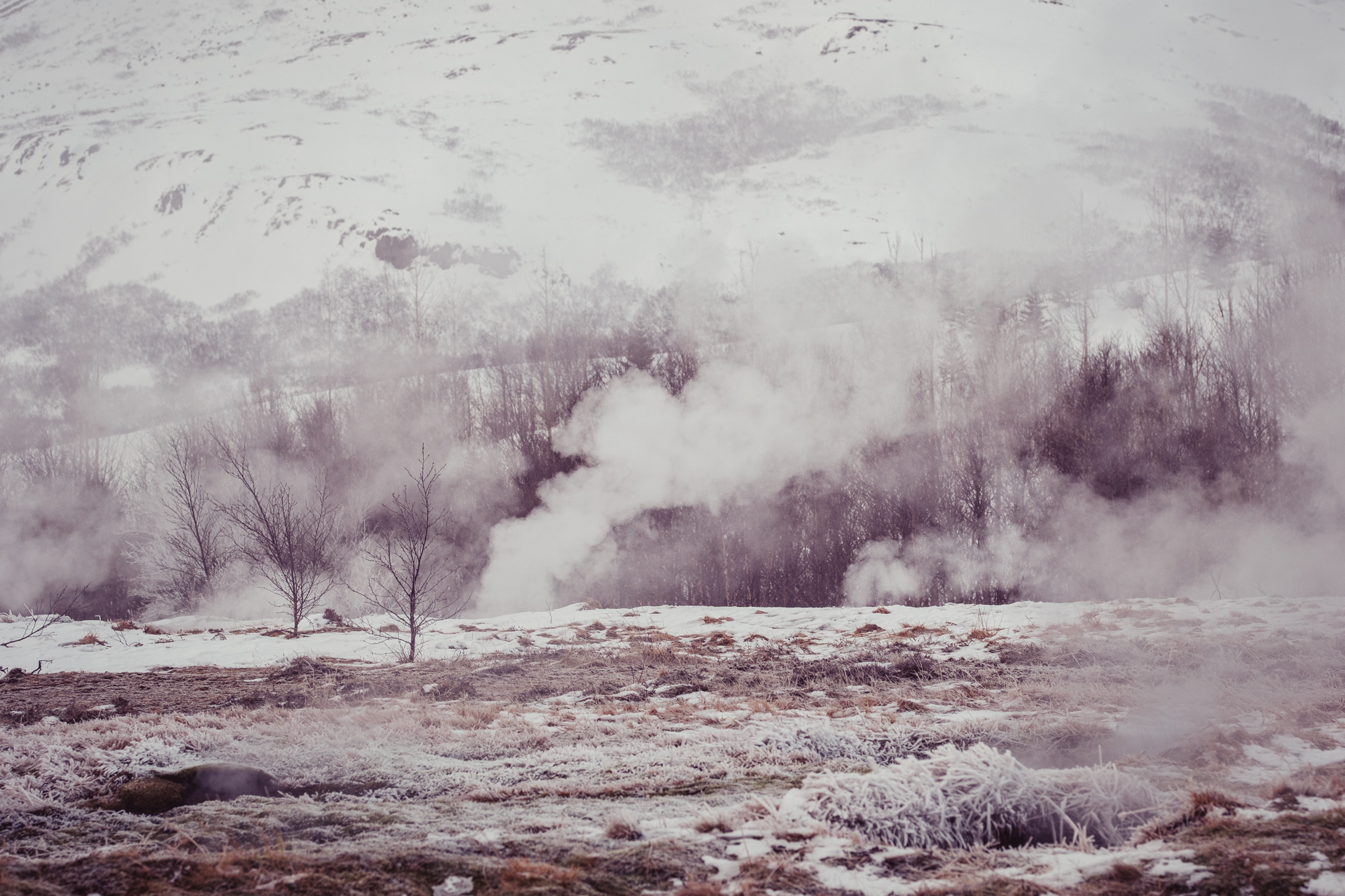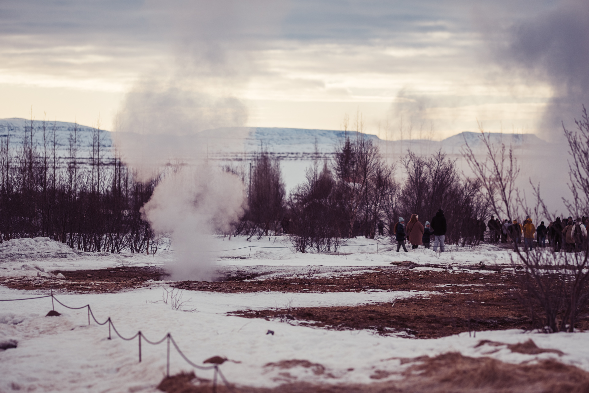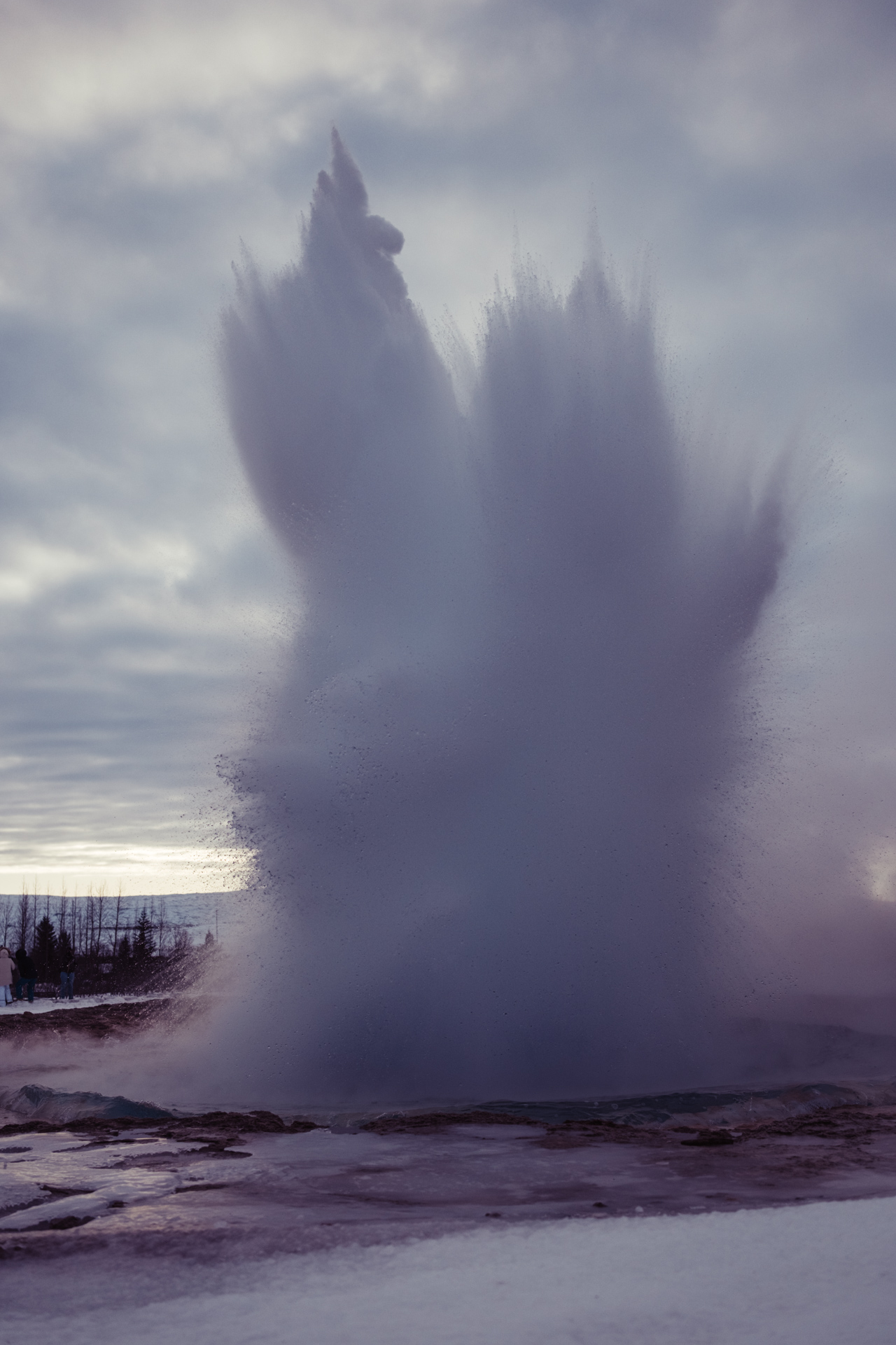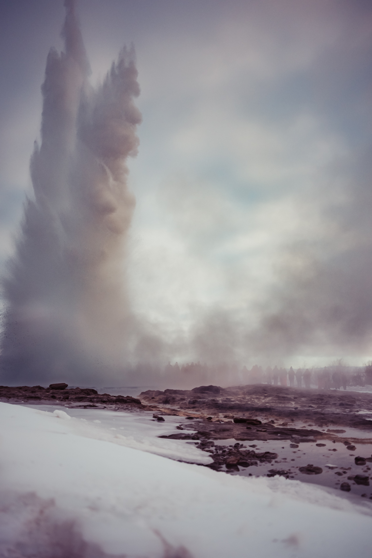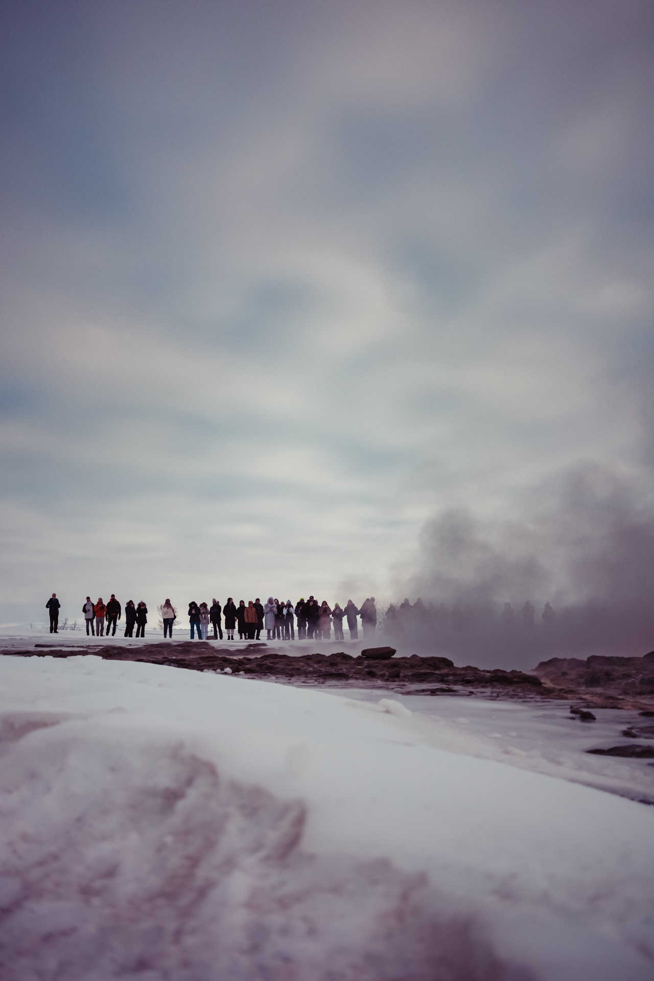 This was my second trip to see the Great Geysir of Haukadalur valley, Iceland. It's a such an eerie place, shrouded in an eternal mist and thick with the smell of sulphur. The mist of course is the steam from a giant natural volcanic hot spring - a massive hole in the ground that blasts boiling water up to 60m in the air every few minutes.