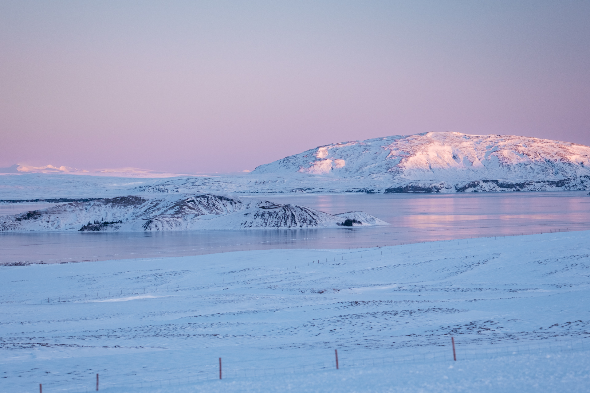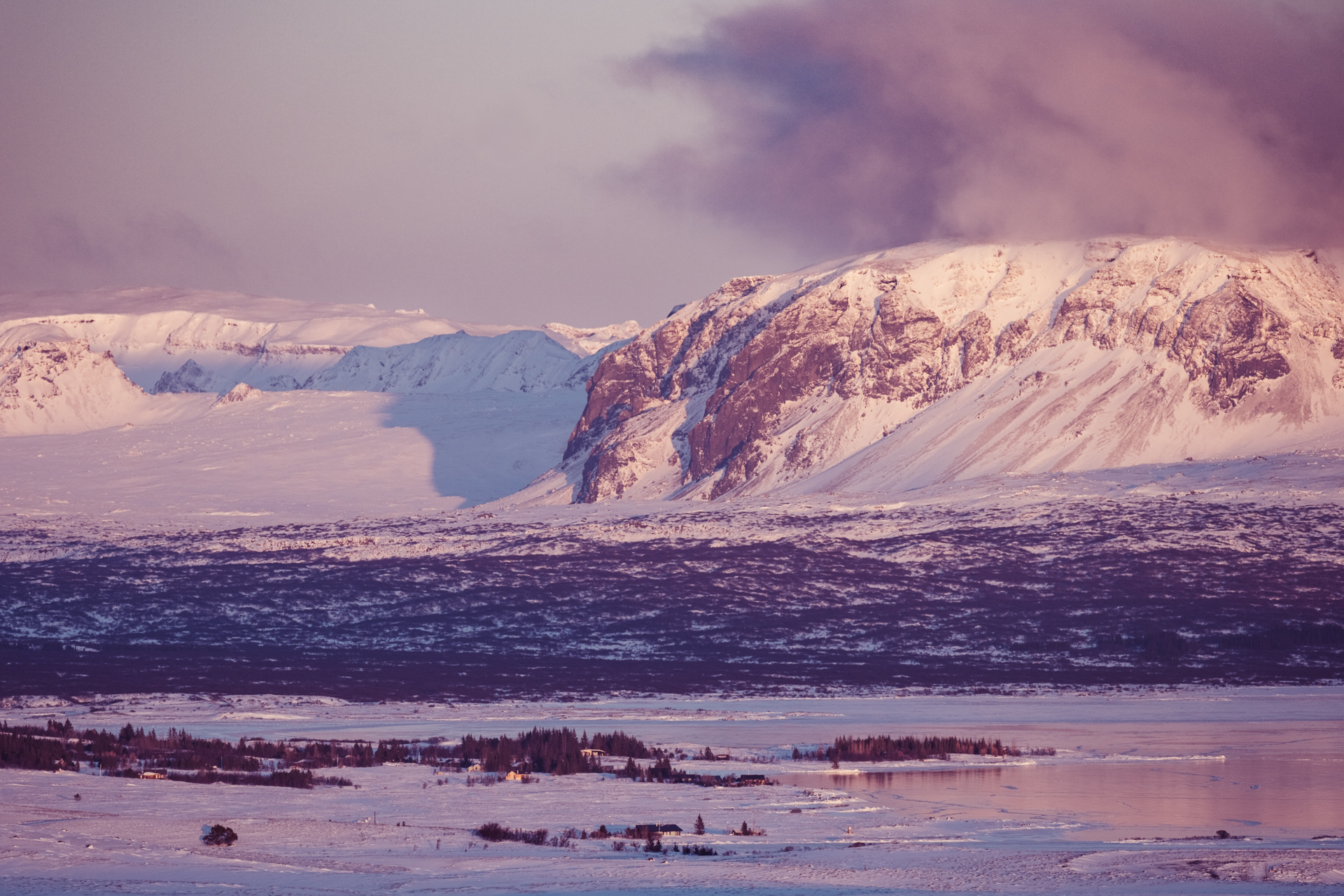 Driving through Þingvellir National Park on the way to our cabin in the Icelandic wilderness, the colours at blue hour were just incredible, so I parked up by the side of the road to capture a few shots of Eiríksjökull in the distance. The wind was bitterly cold, but it was worth the interruption.